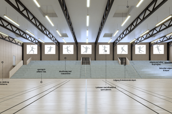 Arenaen vil blive opført parallelt med den nuværende, så der er adgang mellem de to haller og også ind til springcenteret. Ydermere vil der være plads til store gode depotrum.
