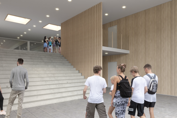 Den nye foyer vil være koblingen mellem den nye hal, de nye kælderfaciliteter og resten af huset. Der vil også være nye miljøer og opholdsområder i den nye foyer.